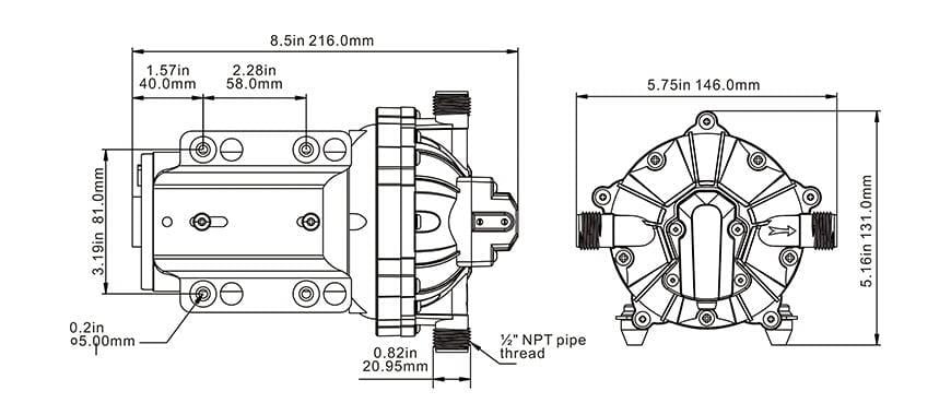 The 55 Series is our Heavy-Duty water pump. It provides high volume water flow with reduced pump cycling, thanks to the large five-chamber diaphragm. These models are designed to run on water systems with no accumulator tank necessary, and up to five fixtures! It is also suited for use with a holding tank water system, as may be found in a boat, RV or remote cabin. It provides up to 5.0 gallons per minute. The 55-Series pumps are self-priming, and can run dry without damage, performance reliable and low current. With a built-in bypass function, the 55 series is able to reduce rapid cycling and not allow water to flow back from the outlet side to the inlet side of the pump. This automatic demand water system pump has a built-in pressure switch, which automatically starts and stops the pump when the faucet is opened and closed.They are easy to install service and winterize