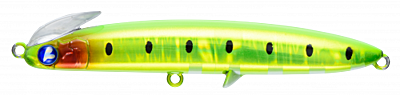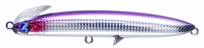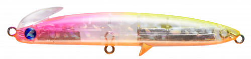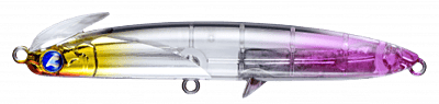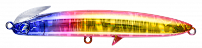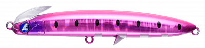 The lure's size has been reduced so that it can be used in a wider range of fields, not only in the open-area such as surf and rock, but also in rivers and harbours. In particular, the ease of use in strong winds is astonishing that sets it apart from other sinking pencils. The rear centre of gravity gives the lure a great flying distance and the twin-lip ensures that the lure grips the water firmly after landing and does not cause any missed action. The wide action allows the angler to feel the lure's resistance immediately after it hits the water, allowing the angler to control the line and easily approach the lure on its intended course, even in strong winds.