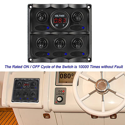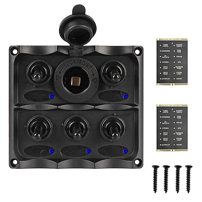 LED Rocker Switch Panel Circuit Breaker 5 Gang DC 12v Waterproof Voltmeter+Cigarette Lighter Plug