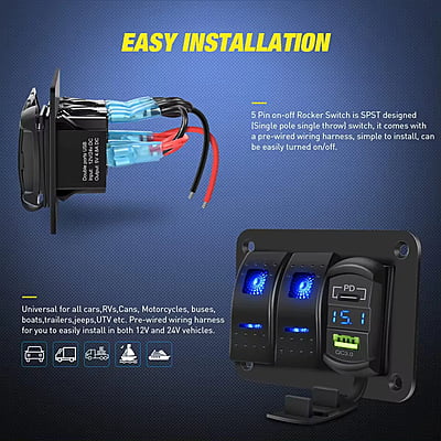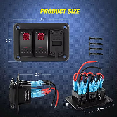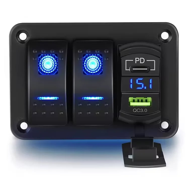 2 Gang Switch With LED Digital Voltmeter + Dual USB Aluminium Panel