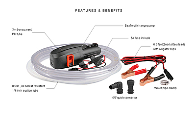 • Perfect for changing engine oil in Boats, RV’s, Lawn and Garden Equipment