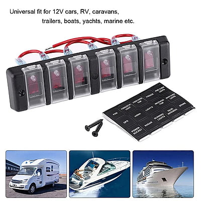 6 Gang Boat Rocker Toggle Switch Panel Waterproof Red LED