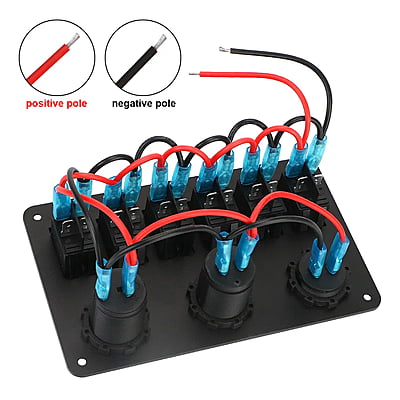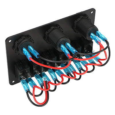 6 Gang Switch Aluminium With Dual USB + Cigarette Lighter Socket + LED Digital Voltmeter