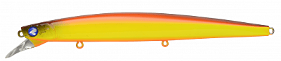 Blooowin! is a far-blowing minnow which delivers unbelievable casting distance at any field for your any use. Precisely balanced, to shift the center of gravity, 3 tungsten balls moves stably along with your any situation. With minimum stall by non-swing of weight ball(PAT.P), keeping its flying position powerfully even against the strong wind or side wind, Blooowin! blows far away stably and well reliably. It creates dual action, a combination of writing letter "S" widely and wobbling-and-rolling strongly. Powerful wave from its action combination prompts reactions and strikes from fish even in the wide open areas..